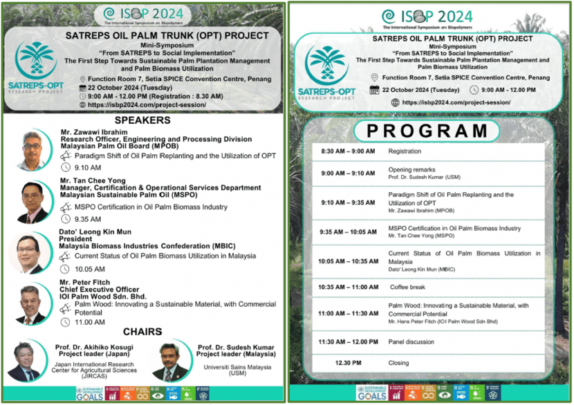 本プロジェクトのミニ・シンポジウムを2024年10月22日にマレーシアのペナンで実施いたします。こちらは、国際バイオポリマーシンポジウム(ISBP2024)の特別イベントとしての開催となります。ISBP2024へ登録された方は自由に参加することができます。皆さまのご参加をお待ちしております(https://isbp2024.com/project-session/)。