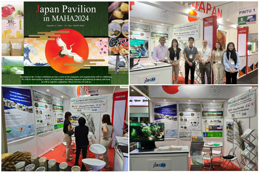 マレーシア最大級の農業展示会MAHA 2024のJapan PavilionにSATREPS OPTプロジェクト(JIRCAS)の展示ブースを9月19日から22日までの4日間出展しました。農業・食料業界関係者や一般来場者にブースへ訪問いただき、プロジェクトについて説明する機会を得ました。また、展示初日の19日にはマハティール元首相も日本パビリオンを訪れ会場は多くの人で賑わいました。
